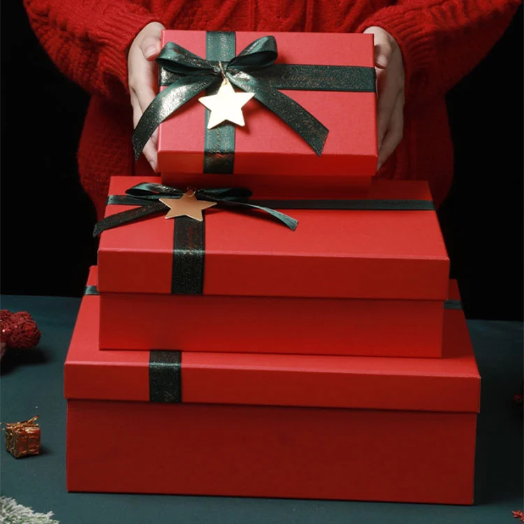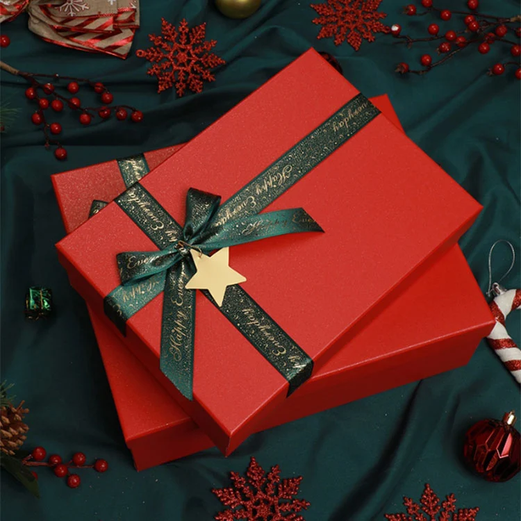 | Nome del prodotto | Confezione regalo natalizia con coperchio rigido e base con nastro e ciondolo a stella |